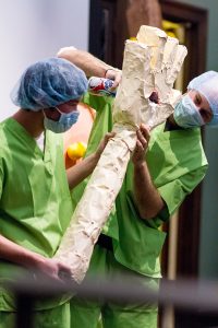 Encountering the Unseen was organized by Isla Hansen and Tucker Marder. Initiated in September of 2014, Isla and Tucker began planning this event by reaching out to local experts, doctors, professors, and graduate students whose work and studies focused on aspects of Microbiology.  The artists asked these microbiologists to provide them with a plan for a ten to fifteen minute lecture, sans images or visualizations, on the subject matter of their work or their interests in microbiology. Artists were paired with speakers in order to provide the visual and performative accompaniment to these lectures. Together, Isla, Tucker, and their collaborators planned simple kinetic sculpture, puppetry, and performance, to attempt to physically manifest the ideas, scientific processes, and phenomena being discussed by each speaker. The works of these artists was intended to activate new ways to visualize information, replacing the standard powerpoint presentation, and bring microorganisms to life on a much larger scale.